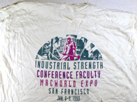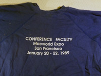 At conventions (see Badges) over the years as faculty, an "expert" speaker, or a member of the Press, Vaughan received many T-shirts that were never or seldom worn. Today, the large collection is wrinkled history in a stored gym bag.