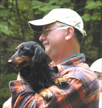 Story and photos by David MunsonAPPLETON (July 6, 04): It was a long 48 hours for Camden resident Aubrey Young, but he and his dog Simon were found alive and in good condition on Tuesday morning after spending three days and two nights on a remote stretch of dirt road in the woods near the Appleton-Hope town line.