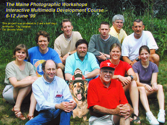 Interactive multimedia is transforming the publishing world and profoundly altering the way we communicate, how we do business, and how we inform and entertain ourselves. This one-week workshop is an introduction to the core elements of multimedia and the computer tools used by professionals to build interactive products. You will learn how to merge photography, video, sound, and graphics into multimedia CDs, Web Sites, and installations useful in today's personal, corporate, and consumer marketplace. We will explore standard and emerging technologies, software applications such as Photoshop, Director, Premiere, Illustrator, and digital camera hardware as you learn new skills and hone others. The emphasis of the workshop is on acquiring the design sense to enable you to plan and build effective projects. During morning lectures and demonstrations and critiques of various products you will discover the architecture and structures of what works and what does not. During afternoon and evening hands-on lab sessions you will learn what software tools you need to acquire, the hardware to buy, and the time constraints and attitudes necessary to build real projects. During lab sessions the class will design the structure of a project, gather its elements, plan the interconnectivity, and implement it using well-known processes and hardware plarforms. Working in teams, you will test your technical skills and creative talents in solving real problems as you work to complete aspects of the whole.