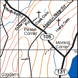 Hart Cemetery is located on the east side of Appleton Ridge Road just north of Pease Corner, in a pasture nearly opposite the first house on the left side of the road when turning northward off of Route 105 onto Appleton Ridge Road. More