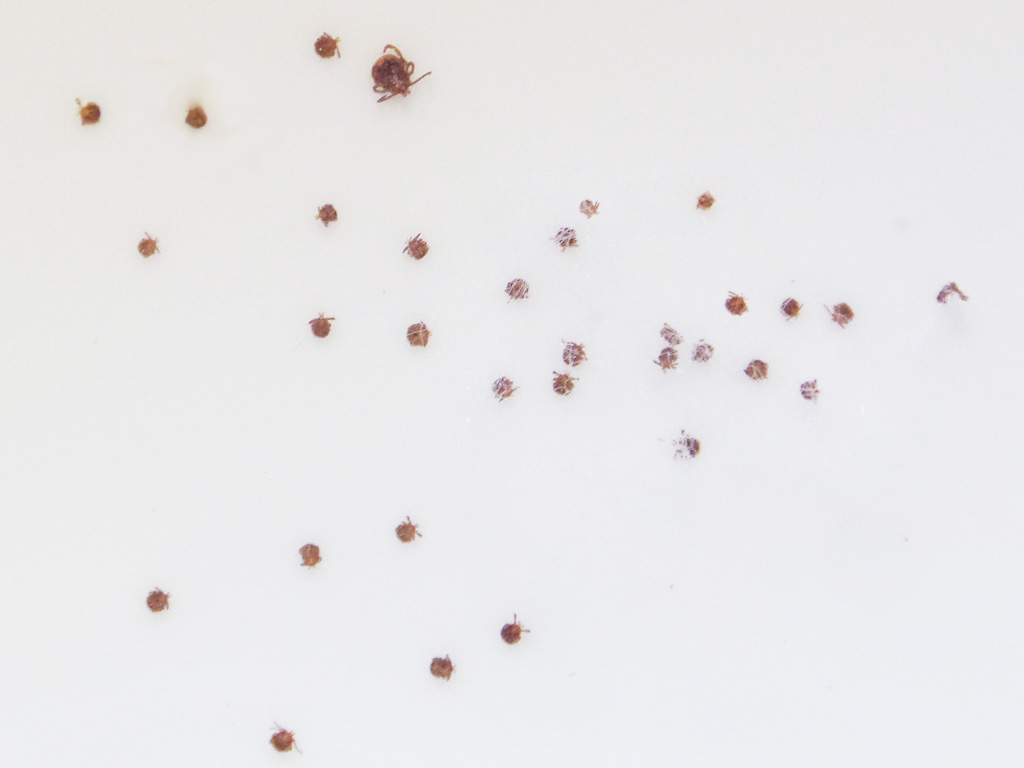 Figure 6. Inspection. The entire surface (both sides) was carefully gleaned of captured ticks.