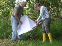The drag was turned over and ticks on the other side were added to the collection. The drag was brushed clean of leaves and detritus and prepared for re-use.
