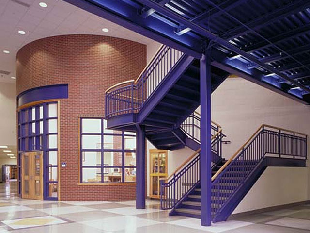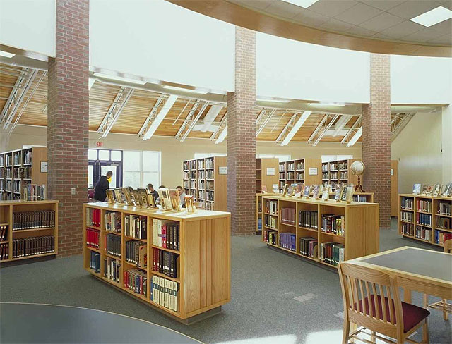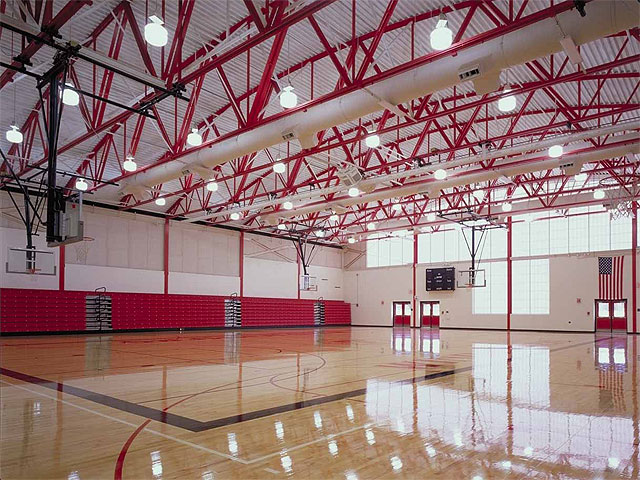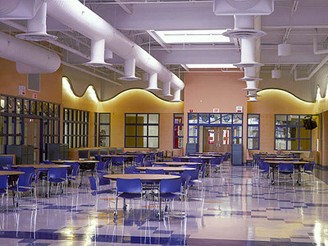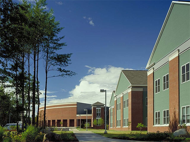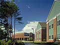 Camden Hills Regional High School This new school is organized to support a teaching style that clusters departments, with math and science in one wing, humanities in another, and manual and fine arts in the third. The cafeteria is more like a food court, with several serving stations. This allows for a full hour lunch period for everyone so that extracurricular activities can be held during the day. The site is steep, with wetlands and ledge, but careful location of the building minimized disruption to natural features. Geothermal heat from wells 1,500-ft. deep helps keep energy costs low for cooling and heating. And a radiant-heating system provides more even temperatures and greater comfort in classrooms. |