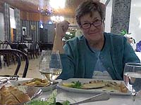 At a fine hotel in Rüdesheim, Zum Bären, we caught some afternoon sleep before meeting up with Tay's first wife, Dagmar Mendelsohn. At the Bears, "Garni" means a hotel without a formal restaurant, just serving a breakfast for guests. For dinner, we walked a block down the cobblestone street to the Central Hotel.