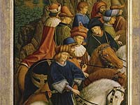 Jan and Hubert van Eyck’s famous Adoration of the Mystic Lamb, better known as the Ghent Altarpiece of 1432, ranks among the most significant works of art in Europe. Housed at Saint Bavo Cathedral in Ghent, Belgium, the large and complex altarpiece suffered a varied history over the centuries. Dismantled, stolen, and damaged many times over, it was reassembled, cleaned, and restored after World War II. Despite this harrowing past, today scholars and art lovers around the world are only a click away from freely exploring over 100 billion pixels of the altarpiece online, thanks to a series of grants provided by the Getty Foundation as part of the Panel Paintings Initiative. [http://www.getty.edu/foundation/initiatives/current/panelpaintings/panel_paintings_ghent.html]