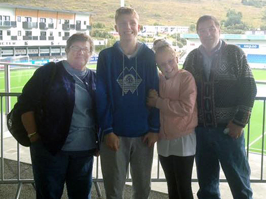 2015: In Ulsteinvik with the Brevik family Guri, Sara, Marius, Ida, and Gerd